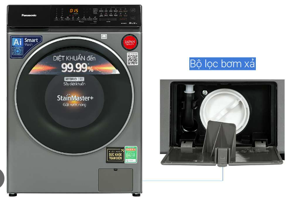 - Panasonic Inverter NA-S96FC1LVT là mẫu máy giặt sấy có tích hợp tính năng sấy tiện lợi, hỗ trợ diệt khuẩn, làm khô nhanh quần áo, đặc biệt hữu ích trong những ngày mưa gió, thiếu nắng, giữ quần áo thơm tho, tránh ẩm mốc. Sự tích hợp đa năng này sẽ gia tăng tính kinh tế, tiết kiệm chi phí khi đầu tư lắp đặt máy giặt cho không gian gia đình.