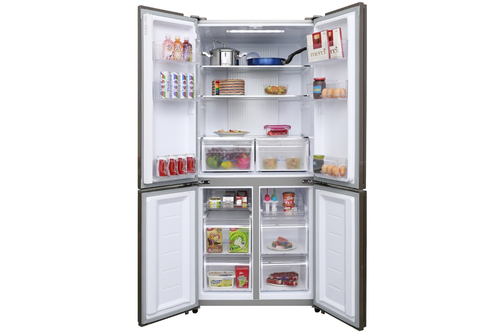 Với thiết kế tủ lạnh 4 cửa có ngăn lạnh trên, 2 ngăn đông dưới cùng dung tích sử dụng rộng rãi 456 lít, cho bạn sử dụng thuận tiện, dễ dàng.