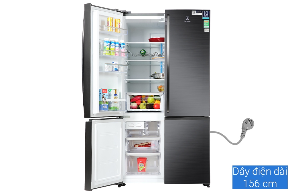 Tủ lạnh Electrolux Inverter 541 lít EQE6000A-B có thiết kế 4 cửa với ngăn lạnh trên và ngăn đông dưới, chất liệu cửa tủ thép không gỉ phù hợp với mọi không gian bếp của gia đình Việt.