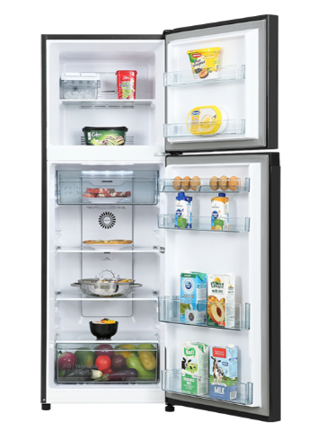 - Tủ lạnh Hitachi với thiết kế kiểu dáng ngăn đá trên quen thuộc với người dùng, tone màu đen dễ dàng kết hợp cùng với nội thất trong gia đình.