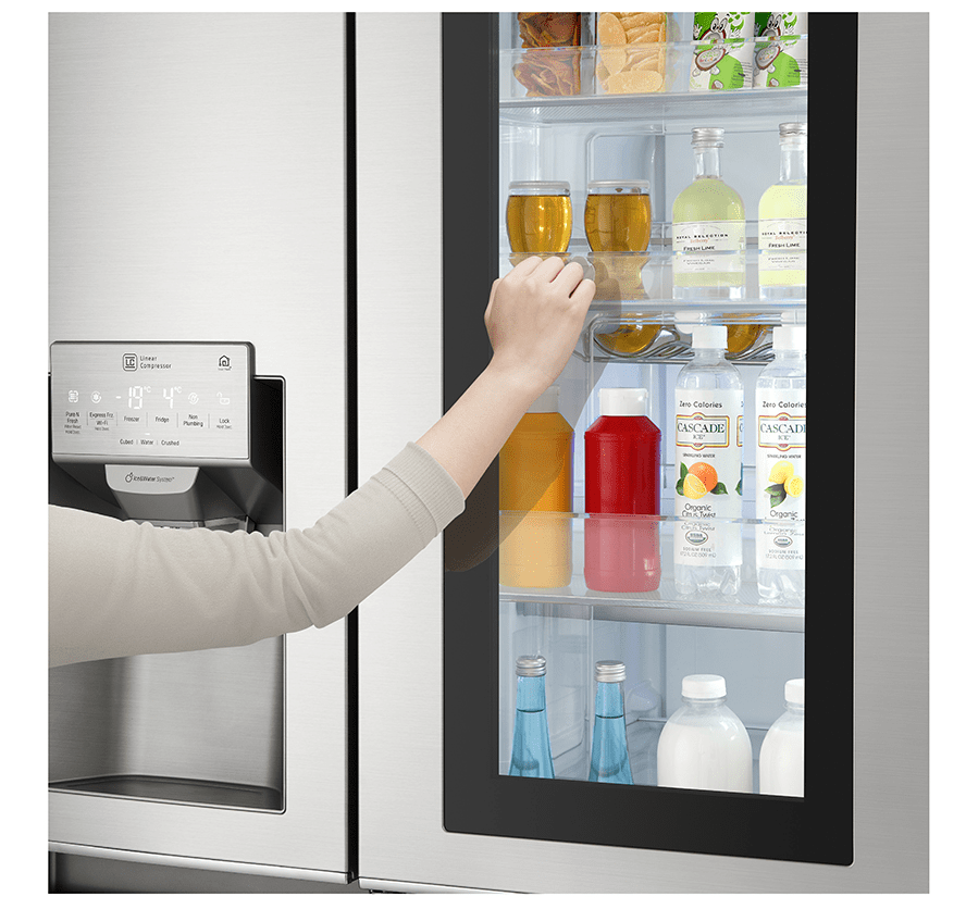 Tủ lạnh InstaView LG trang bị cửa phụ đặc biệt bên ngăn mát để có thể mở tủ lấy thực phẩm mà không thất thoát quá nhiều hơi lạnh. Bạn còn có thể gõ chạm 2 lần để kiểm tra thực phẩm bên trong mà không cần mở tủ, rất tiện lợi và hiện đại.