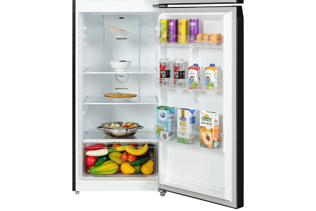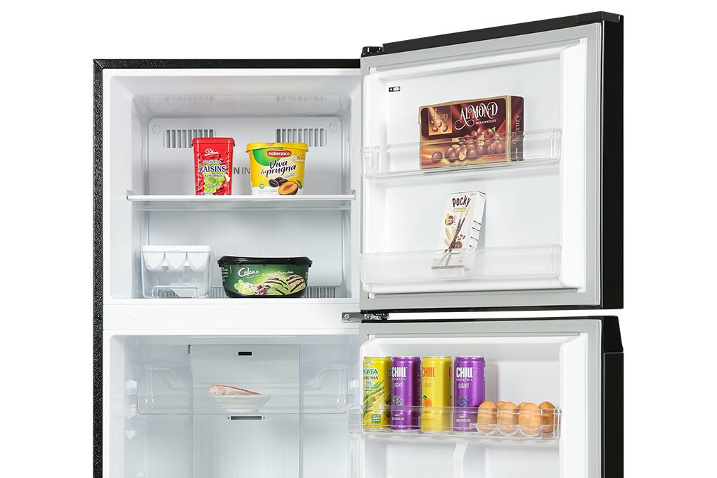 Ngăn lạnh được thiết kế 254 lít, gồm có 1 khay kéo, 2 kệ chia làm 3 ngăn và 1 ngăn rau quả cùng với 5 khay chứa ở phía bên cửa tủ.*Hình ảnh chỉ mang tính chất minh họa